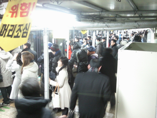 ±×¶§¹®¿¡ °ü¾Ç±¸¸¦ °üÅëÇÏ´Â 2È£¼±Àº »ç¶÷µé·Î ÀλêÀÎÇØ´Ù. ÁöÇÏö ¾È³»¹æ¼Û¿¡¼´Â Æø¼³·Î ÀÎÇØ »ç¶÷µéÀÌ ¸¹ÀÌ ¸ô·Á ½ÂÂ÷ÇÏ´Â µ¥¿¡ ¿À·£ ½Ã°£ÀÌ °É¸°´Ù¸ç, ÀÌÇØ¸¦ ¹Ù¶õ´Ù´Â ¸»À» ¿¬½Å ¹ñ¾î³»°í ÀÖ´Ù.