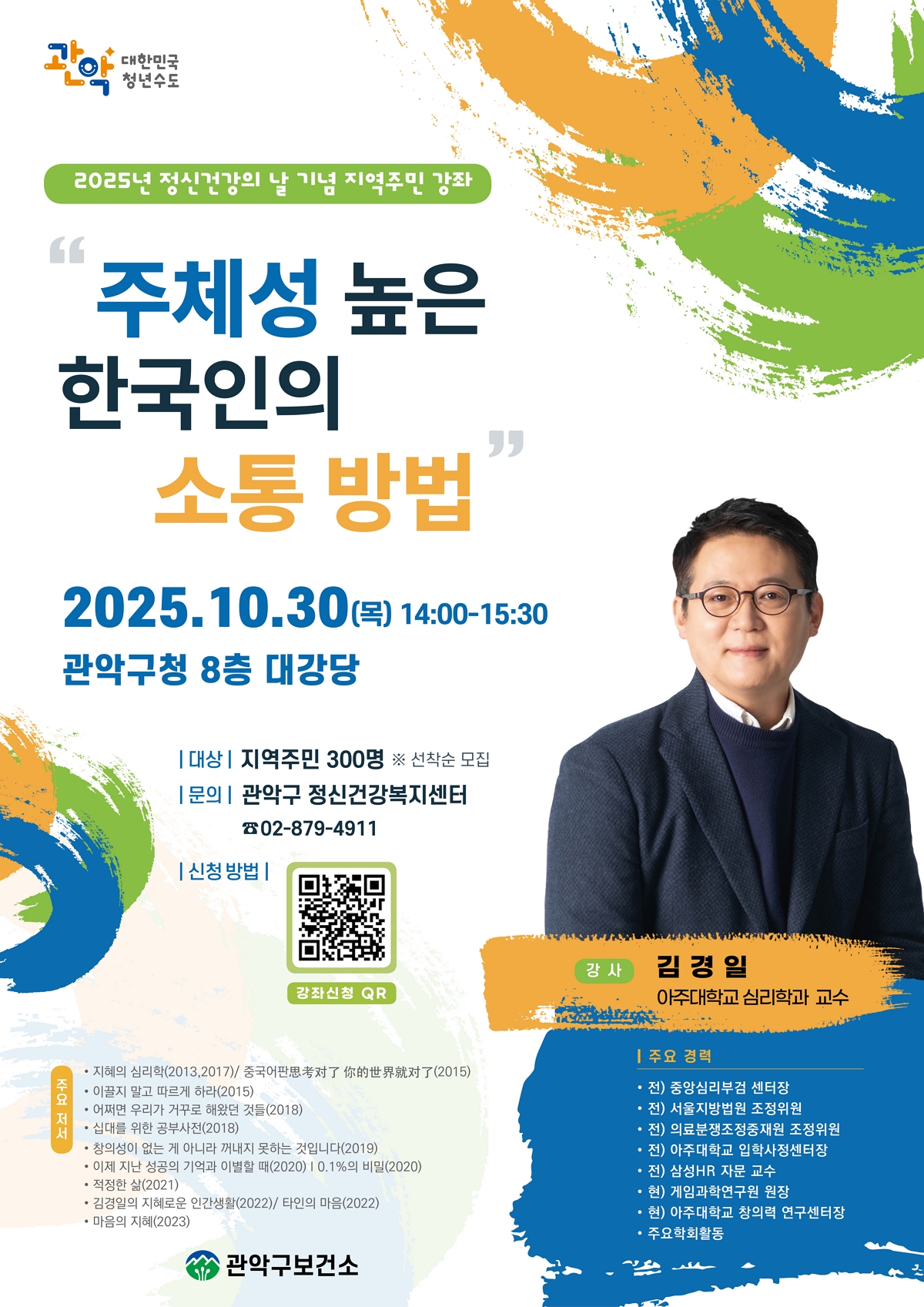 ¡®ÁÖü¼ºÀÌ ³ôÀº Çѱ¹ÀÎÀÇ ¼ÒÅë ¹æ¹ý¡¯¿¡ ´ëÇÑ Æ¯°Àº ¿À´Â 30ÀÏ ¿ÀÈÄ 2½Ã °ü¾Ç±¸Ã» ´ë°´ç¿¡¼ ÁøÇàµÉ ¿¹Á¤ÀÌ´Ù. Á¤½Å °Ç°¿¡ °ü½É ÀÖ´Â ÁÖ¹ÎÀ̶ó¸é ´©±¸³ª Âü¿©ÇÒ ¼ö ÀÖ°í, 10¿ù 24ÀϱîÁö °ü¾Ç±¸Ã» ȨÆäÀÌÁö(Âü¿©/¿¹¾à¢¹Âü¿©½Åû¢¹°ÁÂ/Çà»ç¿¹¾à)¿¡¼ ½ÅûÇÏ¸é µÈ´Ù.