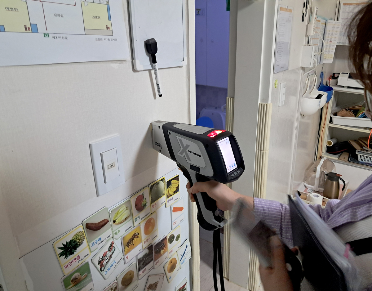| ±¸Ã» °ü°èÀÚ°¡ ¾î¸°ÀÌÁý ½Ç³» º®¿¡ »ç¿ëµÈ µµ·áÀÇ Áß±Ý¼Ó ÇÔ·®À» ÃøÁ¤Çϰí ÀÖ´Ù |
