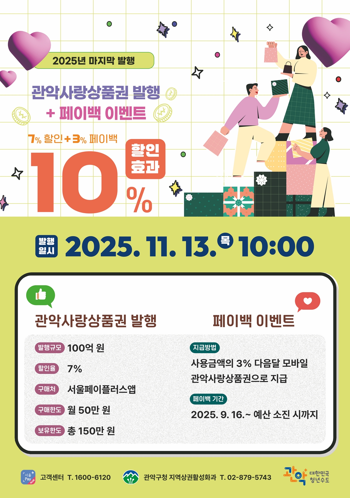 ÇÑÆí 10¿ù 29ÀϺÎÅÍ 11¿ù9ÀϱîÁö 12Àϰ£ ¿¸®´Â ¡®2025 ÄÚ¸®¾Æ±×·£µå Æä½ºÆ¼¹ú¡¯ ±â°£¿¡´Â °ü¾Ç»ç¶û»óǰ±ÇÀ¸·Î °áÁ¦ÇÏ¸é »ç¿ë ±Ý¾×ÀÇ 5%¸¦ ÆäÀÌ¹é »óǰ±ÇÀ¸·Î µ¹·ÁÁִ ȯ±Þ ÇýÅÃÀÌ Àû¿ëµÈ´Ù.