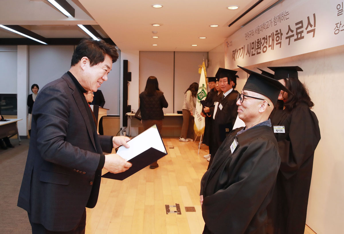 ±è»õºû: ³×. Áö³ 3ÀÏ ¼¿ï´ë ȯ°æ´ëÇпø¿¡¼ Á¦17±â ½Ã¹Îȯ°æ´ëÇÐ ¼ö·á½ÄÀÌ ¿·È½À´Ï´Ù. ¹ÚÁØÈñ ±¸Ã»Àå, ±³¼öÁø, ±³À°»ý°ú °¡Á· µî ¾à 70¸íÀÌ Âü¼®Çß°í ±×Áß 40¸íÀÌ Á¤½Ä ¼ö·áÇß½À´Ï´Ù. 12ȸ Áß 9ȸ ÀÌ»ó µé¾î¾ß ¼ö·áÇÒ ¼ö ÀÖ°í, °³±ÙÇϽŠºÐµé²²´Â °³±Ù»ó°ú ¼¿ï´ë ±â³äǰÀÌ Àü´ÞµÆ½À´Ï´Ù.