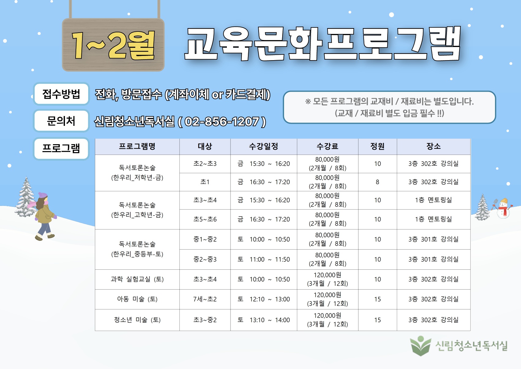 ¼: ³×, ÀÌ °úÁ¤µéµµ ¾ÆÁÖ ¾ËÂ÷°Ô ±¸¼ºµÇ¾î ÀÖ½À´Ï´Ù. °úÇнÇÇè±³½ÇÀº Ãʵî 4~6ÇгâÀ» ´ë»óÀ¸·Î »ýȰ ¼Ó °úÇÐ ¿ø¸®¸¦ Àç¹ÌÀÖ´Â ½ÇÇèÀ¸·Î Á÷Á¢ üÇèÇϸç È£±â½É°ú ޱ¸·ÂÀ» ³ôÀ̴ üÇè Á᫐ ÇÁ·Î±×·¥ÀÔ´Ï´Ù. ¹Ì¼ú ¼ö¾÷Àº µÎ ´Ü°è·Î ³ª´µ´Âµ¥¿ä. À¯¾Æ ¹Ì¼úÀº Á¶Çü Ȱµ¿°ú ¸¸µé±â µî ´Ù¾çÇÑ ¹Ì¼ú üÇèÀ» ÅëÇØ °¨¼º°ú »ó»ó·ÂÀ» Ű¿ì´Â ÅëÇÕ È°µ¿À̰í , û¼Ò³â ¹Ì¼úÀº °³ÀÎÀÇ ¼öÁØ¿¡ ¸ÂÃç ½ºÄÉÄ¡ºÎÅÍ Ã¤»ö±îÁö ´Ü°èº° Áöµµ·Î ÀÚ±âÁÖµµÀûÀÎ ¿¹¼ú ¿ª·®À» Ű¿öÁÝ´Ï´Ù. ÇØ¹ý¼öÇÐÀº Ãʵî 1~5ÇгâÀ» ´ë»óÀ¸·Î ¼öÁغ° ¸ÂÃã ±³À縦 ÅëÇØ ½Ç·ÂÀ» źźÈ÷ ½×¾ÆÁÝ´Ï´Ù. ¼ö°À» ¿øÇϽô ºÐµé²²¼´Â 02-856-1207·Î ¹®ÀÇÇØÁÖ½Ã¸é µÇ°Ú½À´Ï´Ù.