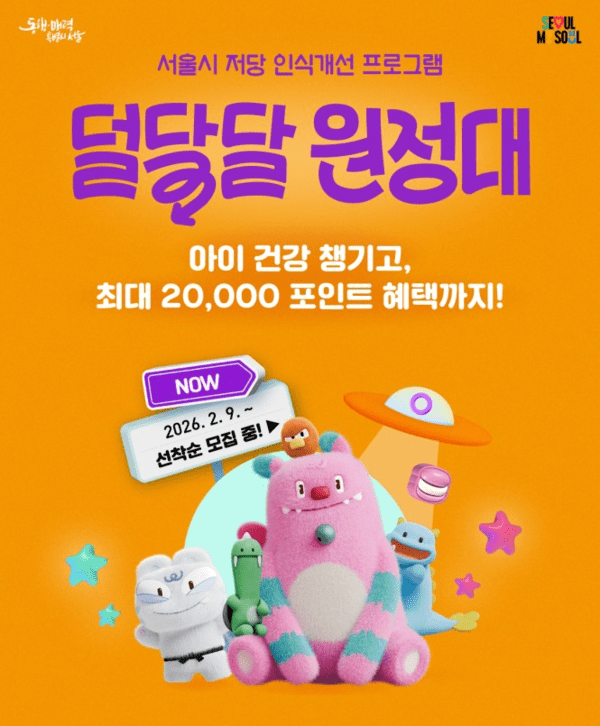 ¹Ú: ³×, ¼¿ï½Ã°¡ ¾î¸°ÀÌ ´ç·ù ¼·Ã븦 ÁÙÀ̱â À§ÇÑ °Ç° ÇÁ·ÎÁ§Æ® ¡®´ú´Þ´Þ ¿øÁ¤´ë¡¯¸¦ ¿ÃÇØ ´Ù½Ã ¿î¿µÇÕ´Ï´Ù. Áö³ÇØ ³ôÀº Âü¿©À²°ú ½Çõ ¼º°ú¸¦ º¸¿´´ø ÇÁ·Î±×·¥Àä. ¿ÃÇØµµ 2¿ù 9ÀϺÎÅÍ ¼±Âø¼ø 2¸¸ ¸íÀ» ¸ðÁýÇÕ´Ï´Ù.