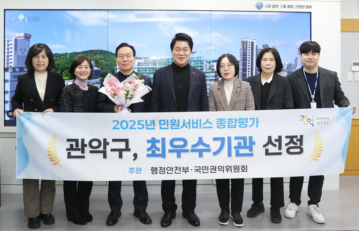 °ü¾Ç±¸(±¸Ã»Àå ¹ÚÁØÈñ)°¡ ÇàÁ¤¾ÈÀüºÎ¿Í ±¹¹Î±ÇÀÍÀ§¿øÈ¸°¡ °øµ¿ ÁÖ°üÇÑ ¡®2025³â ¹Î¿ø¼ºñ½º Á¾ÇÕÆò°¡¡¯¿¡¼ °¡Àå ¿ì¼öÇÑ ¼ºÀûÀ» °ÅµÖ ÃÖ¿ì¼ö ±â°üÀ¸·Î ¼±Á¤µÇ´Â ¿µ¿¹¸¦ ¾È¾Ò´Ù.