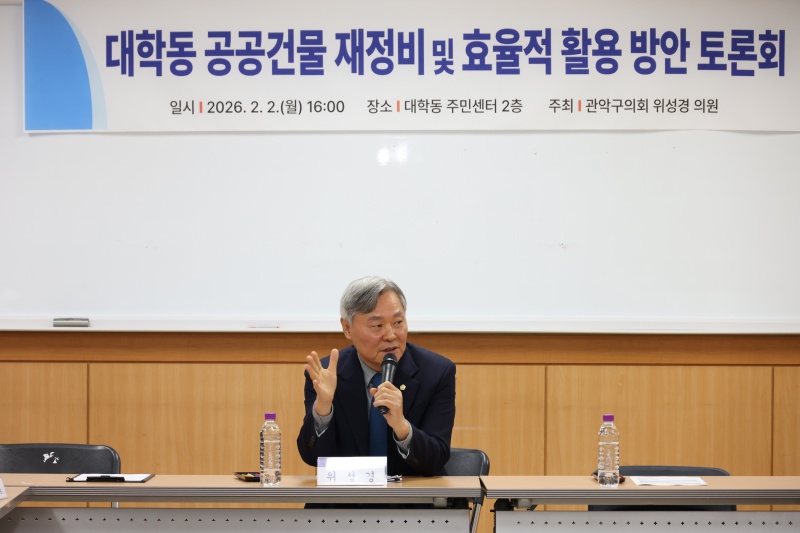À§¼º°æ °ü¾Ç±¸ÀÇȸ ÀÇ¿ø(´õºÒ¾î¹ÎÁÖ´ç, »ï¼ºµ¿¡¤´ëÇе¿)ÀÌ ´ëÇе¿ ÀÏ´ë °ø°ø°Ç¹°ÀÇ ÀçÁ¤ºñ¿Í È¿À²Àû Ȱ¿ë ¹æ¾ÈÀ» ¸ð»öÇϱâ À§ÇÑ Åä·Ðȸ¸¦ ¿¾ú´Ù.