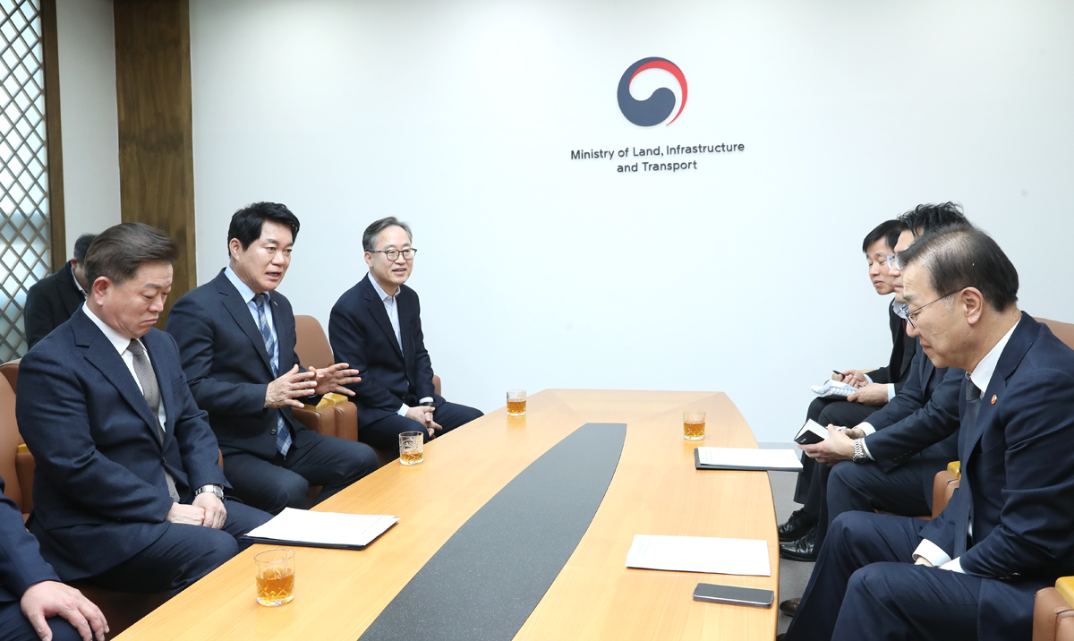| °ü¾Ç±¸ µî 4°³ ÁöÀÚüÀåÀÌ ±¹ÅäºÎ¸¦ ¹æ¹®ÇØ ½Åõ½Å¸²¼± ±¹°¡Ã¶µµ¸Á ±¸Ãà°èȹ ¹Ý¿µÀ» À§ÇÑ °øµ¿°ÇÀǹ®À» Àü´ÞÇß´Ù(°¡¿îµ¥ ¹ÚÁØÈñ °ü~ |