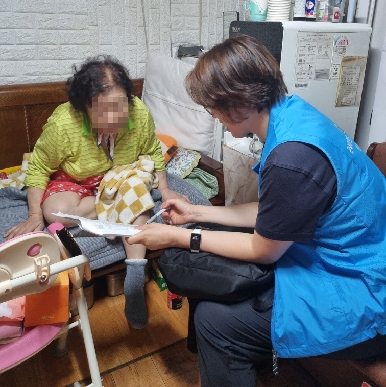 | °ü¾Ç±¸ Åð¿øÈ¯ÀÚ Àü´ãÄÉ¾î ¸Å´ÏÀú°¡ ´ë»óÀÚ Áý¿¡ ¹æ¹®ÇÏ¿© ¼³¸íÇϰí ÀÖ´Â ¸ð½À |