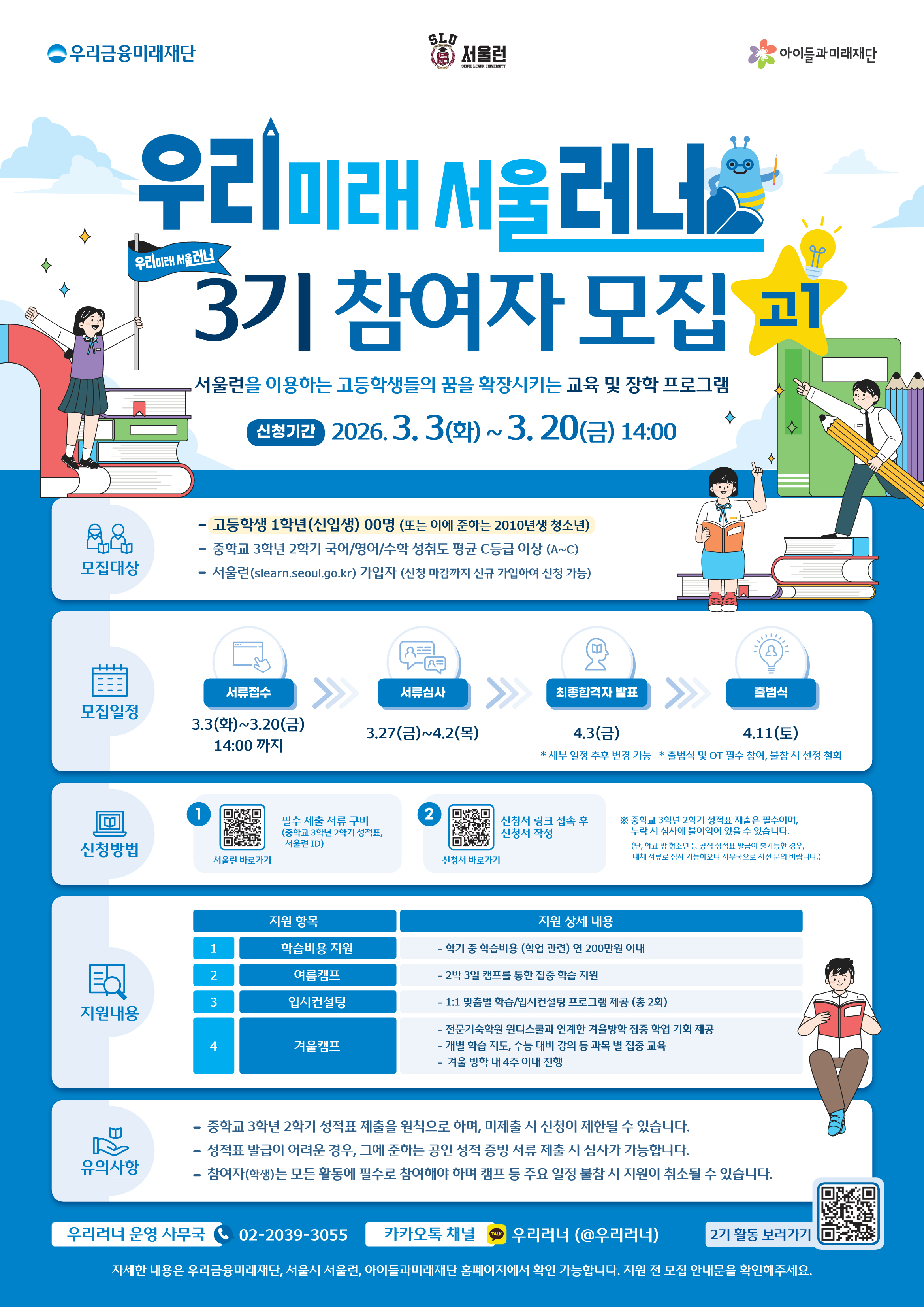 ¼: ³×, ¼¿ï½Ã¿Í ¿ì¸®±ÝÀ¶¹Ì·¡Àç´ÜÀÌ ÇÔ²²ÇÏ´Â '2026³â ¿ì¸®¹Ì·¡ ¼¿ï·¯³Ê 3±â' Âü¿©ÀÚ ¸ðÁý ¼Ò½ÄÀÔ´Ï´Ù. °øÀû ±³À° Ç÷§ÆûÀÎ '¼¿ï·±' ȸ¿øÀ» ´ë»óÀ¸·Î ÇнÀºñºÎÅÍ ¹æÇÐ Ä·ÇÁ±îÁö ¾ÆÁÖ »§»§ÇÏ°Ô Áö¿øÇØ ÁÖ´Â ÇÁ·Î±×·¥ÀÔ´Ï´Ù.