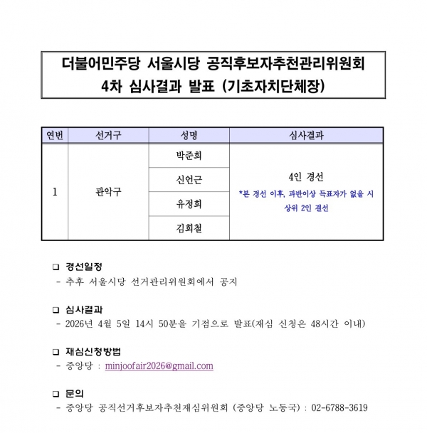 ±×·¡¼, ´õºÒ¾î¹ÎÁÖ´ç °ü¾Ç±¸Ã»Àå È帴 ¹ÚÁØÈñ, ½Å¿¬±Ù, À¯Á¤Èñ, ±èÈñö, ÀÌ·¸°Ô 4ÀÎ °æ¼±À¸·Î ÁøÇàµË´Ï´Ù. ±×·¯´Ï±î ±¸Ã»Àå È帴 ¾ÆÁ÷ ´©°¡ µÆ´Ù°í È®Á¤µÈ °Ç ¾Æ´Ï°í, Áö±ÝÀº 4¸íÀÌ °æÀïÇÏ´Â ´Ü°è¶ó°í º¸½Ã¸é µË´Ï´Ù.