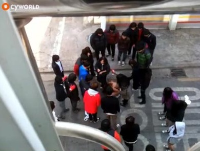 Á¹¾÷½ÄÀ» ¸¶Ä£ ÈÄ, 20¿© ¸íÀÇ ÇлýµéÀÌ ÇÑ ¿©Áß»ýÀ» µÑ·¯½Î°í ±³º¹À» ¹þ±â°í, ÄÉøÀ» »Ñ¸®´Â µî Áý´Ü ÆøÇàÀ» °¡ÇÏ´Â Àå¸éÀÌ ´ã±ä µ¿¿µ»óÀÌ ÀÎÅͳÝÀ» ÅëÇØ °ø°³µÅ Ãæ°ÝÀ» ÁÖ°í ÀÖ´Ù.